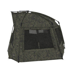 L’abri le plus rapide et le plus facile à monter est encore amélioré avec l'introduction de l’extraordinaire Tempest RS 150 Camo. Au cœur de la tente de pêche à la carpe se trouve le célèbre bloc-charnière breveté, permettant une installation facile et rapide. Le temps de montage, la convivialité et la fonctionnalité ont été considérablement améliorés avec le système breveté Rapid Knuckle, permettant aux cinq mâts principaux de se verrouiller en une seule action facile. Simple, sécurisé et solide, ériger votre abri n'a jamais été aussi facile. Les améliorations supplémentaires du Rapid Shelter comprennent un auvent intégré pour minimiser l'infiltration d'eau autour de la porte, et sa taille peut être augmentée pour permettre une couverture encore plus grande avec l'ajout d'une Skull Cap. L'arrière de l'abri a été rendu plus plat que son prédécesseur, offrant un équilibre optimal entre l'espace de stockage interne, la capacité à s'adapter aux postes et l'aérodynamisme. La circulation de l'air à travers l'abri a été améliorée avec la ventilation adaptative sur six ouvertures (quatre à l'arrière et deux à l'avant), facilitant le flux d'air même lorsqu'il pleut. Pour rester plus frais en été, les quatre ouvertures arrière peuvent être fixées avec des sardines pour créer des zones ombragées, ce qui, utilisées avec une Skull Cap, peut réduire la température interne de plusieurs degrés. Pour un rangement optimal, il y a quatre poches internes, deux de chaque côté et deux à l'avant. Celles à l'avant comprennent une boucle de suspension où vous pouvez ranger des éléments essentiels tels que votre récepteur ou même votre veste pour une sortie rapide par temps incertain.