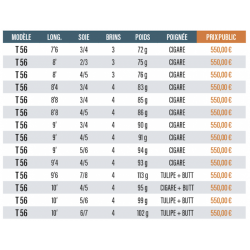 Une seule prise en mains suffit pour appréhender l’impressionnant niveau de puissance et la très haute performance de la série DVX T56. L’association de la nouvelle technologie du carbone très haut module HMX56, encore plus léger et offrant plus de résistance, avec les nouveaux mandrins de la T56, confère à cette série un équilibre irréprochable.