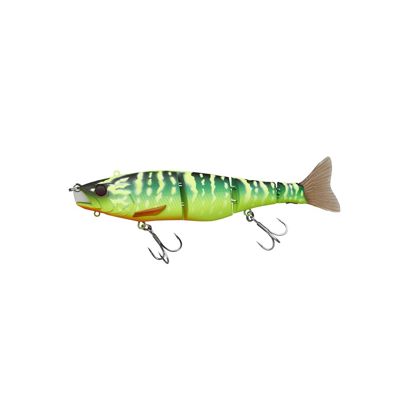 Ce 'Swimbait' d'exception largement plébiscité par les pêcheurs de brochets et de black-bass pour sa nage ultra-réaliste fait son grand retour cette année ! Le Gantia 180 doit son extrême mobilité à sa segmentation en 4 parties et son imposante caudale souple. Véritable aimant, ces caractéristiques lui confèrent une nage naturelle irrésistible pour dénicher tout type de carnassiers quelque soit la configuration (plateaux d’herbiers, enrochements, frondaisons, structures immergées…). Il supporte une amplitude de vitesse de récupération très large, de la plus lente à la plus rapide autorisant un large panel d'animation (linéaire lent ou plus ou moins rapide, stop & go, dead sticking). Vous serez bluffer par sa capacité à se mettre en action de nage sous le seul effet d'un courant lent. La grande réactivité de ce leurre l'autorise également à être animer dans des espaces très restreints. Sa capacité a resté immobile entre deux eaux sur les phases de pause permet d'insister longuement sur les postes. A la différence des Jointed Swimbait classiques, le Gantia 180 possède un concept innovant : une gueule ouverte pour mieux ressentir sa nage et une plaque en ABS positionnée à la verticale agissant comme une étrave afin d’empêcher l’accumulation des débris végétaux en suspension. Il est tout à fait possible de l’animer en rasant le fond à la manière d’un poisson se nourrissant dans les profondeurs en l’armant d’un hameçon double sur l’œillet supérieur de la tête et en lui ajoutant un lest amovible de type John Weight sous la gorge. Six couleurs ' RT = Real Type ' viendront parfaire le réalisme de ce leurre afin de soudoyer les carnassiers les plus réticents.