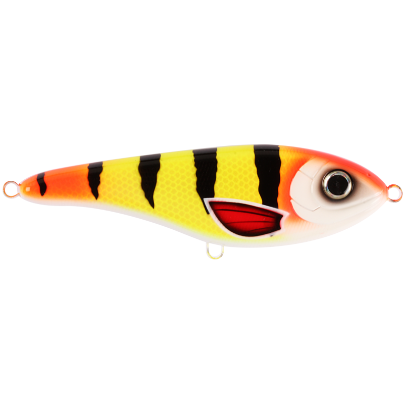 Certainement le jerkbait le plus utilisé au monde et des milliers de brochets métrés à son actif. Cet indispensable leurre coulant évolue jusqu’à 3 mètres de profondeur et pourra faire monter un prédateur situé à 6 mètres ! Des tirées régulières (tel un métronome réglé sur 3 secondes) franches et courtes ; canne basse ; feront claquer ses billes à la sonorité grave et lui donneront cette nage sinueuse entrecoupée de temps d’arrêts que les brochets affectionnent particulièrement.