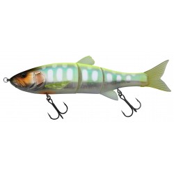 Le DOWZSWIMMER 220 SF est un leurre articulé en trois parties, de taille conséquente pour la pêche des poissons spécimens tel que (Black-Bass, Brochet et Silure). Son design très réaliste (détails des ouïes, des nageoires,…) ainsi que la finition des couleurs naturelles « RT=Real Type » mimétisent à la perfection les proies de ces carnassiers. Son action de nage en S s’obtient par le simple fait de récupérer la ligne mais, il marquera également de grands écarts en lui imprimant des jerks ! Sa densité vous permettra d’effectuer des lancers longues distances avec une parfaite précision bien qu’il soit articulé ! Un leurre idéal pour la prospection des zones peu profondes (shallow), au-dessus des herbiers, à proximité des structures… Il dispose d’un second œillet sous sa gueule afin d’ajouter un lest de type « John Weight » qui ajustera la profondeur de nage. Sa queue en élastomère renforce le naturel de sa nage. Le DOWZSWIMMER ne manquera pas d’attirer les prédateurs postés en profondeur !