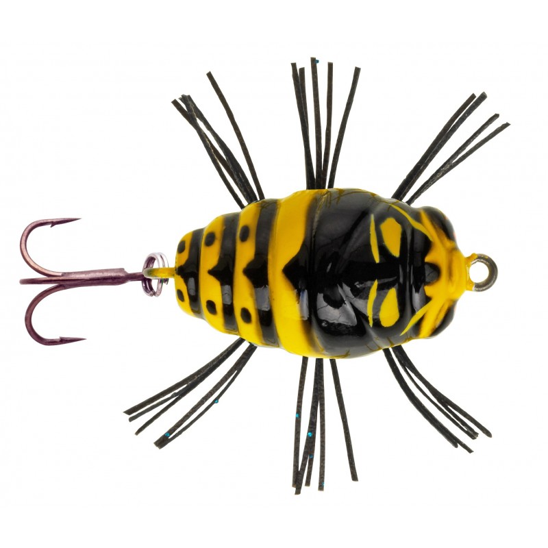 Réalisé en mousse polyuréthane haute densité, le Notobug est une imitation d’insecte très plaisante à utiliser lorsqu’on recherche les Chevesnes, les truites ou les Bass, tous trois particulièrement friands de ce genre de bestioles ! La version 22 F peut s’utiliser facilement avec une canne à mouche. Animé par petits coups de scion, on peut faire vibrer les pattes en filaments de silicone du Notobug pour lui donner l’aspect d’un insecte tombé à l’eau en train d’agoniser en se débattant. Une autre très bonne technique d’animation est possible en récupérant en stop & go le Notobug, ce qui le fait plonger et onduler sous la pellicule d’eau. Lors des pauses il remonte à la surface comme pour venir respirer…c’est là qu’il se fait souvent gober ! Enfin, la technique ultime pour tromper des poissons les plus méfiants : le laisser inerte en surface près des voûtes végétales ou des bancs d’herbiers et ne rien faire du tout !